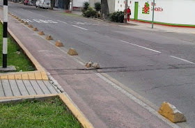 Pista desnivelada, protectores rotos, ruta bloqueada, la seguridad no es una palabra adecuada para esta extraña ciclovia en la Av. Reducto de Miraflores.